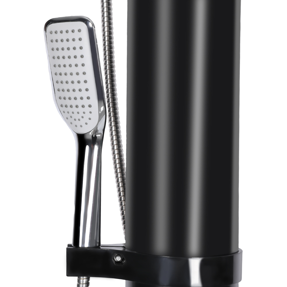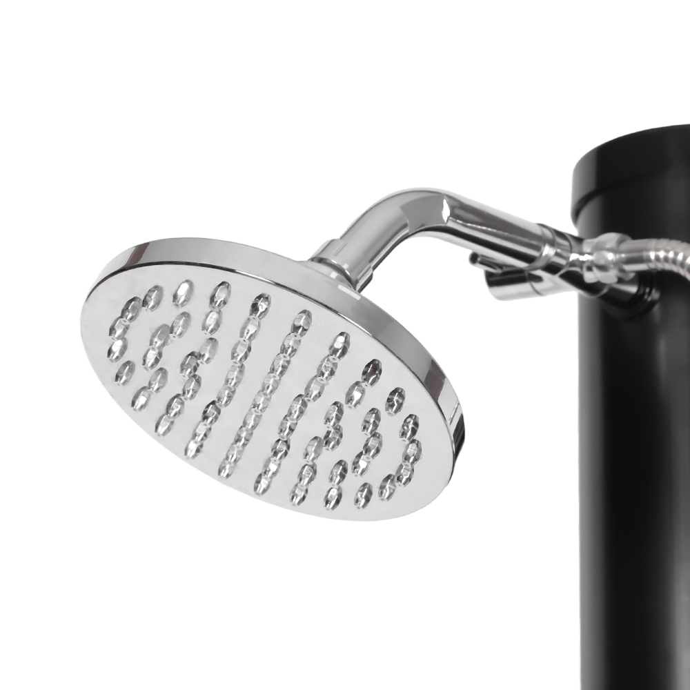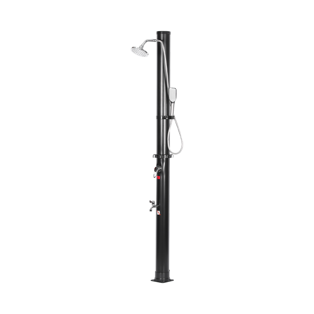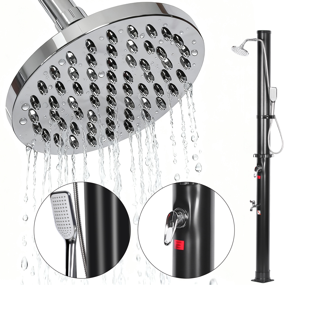 Deze LY18L05-HB 18L tweedelige abs verchroomde douchekop op zonne-energie buitendouche voor in de tuin is voorzien van een handige tuinslangaansluiting voor eenvoudig vullen en een aftapplug die snel legen mogelijk maakt bij het voorbereiden van de unit voor opslag in de winter. Zodra de douchepijp gevuld is, wordt het water op natuurlijke wijze opgewarmd met behulp van zonne-energie. Dankzij de geïntegreerde mengkraan stel je het water eenvoudig in op de gewenste temperatuur voor een comfortabele douche-ervaring. Alle componenten zijn stevig vastgezet met schroeven om duurzaamheid te garanderen, en voor een veilige werking moet de douche goed in de grond worden verankerd. Er worden duidelijke, meertalige instructies meegeleverd om u door de installatie en het gebruik te begeleiden, waardoor het installatieproces eenvoudig en betrouwbaar is.