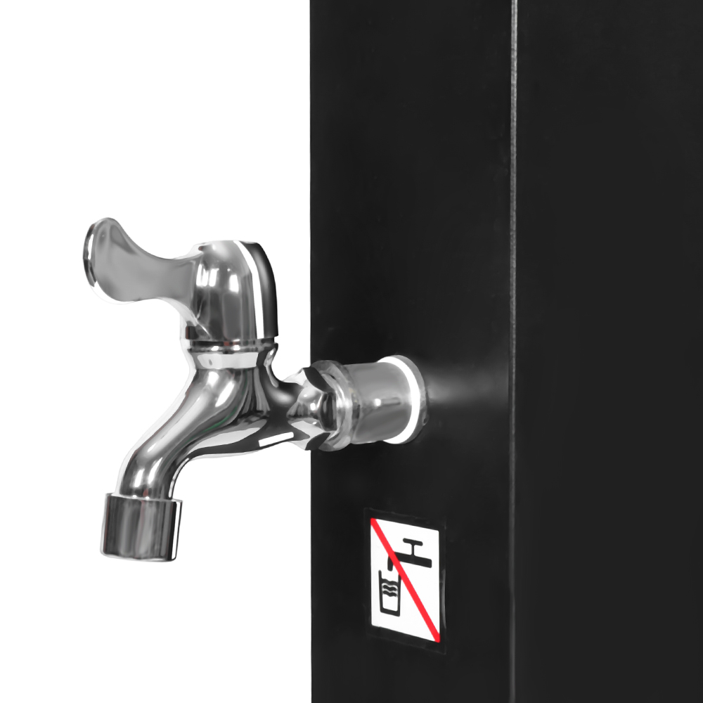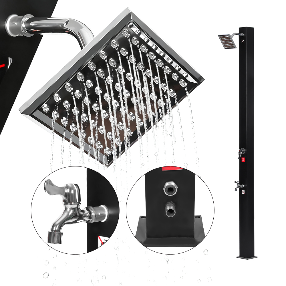 Deze LY18L08-SS verstelbare, geïntegreerde UV-bestendige zonnedouche is doordacht ontworpen voor zowel comfort als gebruiksgemak. De royale regendouchekop, voorzien van een geïntegreerd kogelgewricht, kan tot 180° draaien, waardoor je de hoek kunt aanpassen voor een plezierige en verfrissende douche-ervaring. Het apparaat is gemaakt van UV-bestendig plastic, is duurzaam en kan snel worden gedemonteerd voor eenvoudig transport of opslag wanneer het niet in gebruik is. De stevige basis, gemaakt van roestvrij staal, ABS, koper en andere betrouwbare materialen, zorgt voor een veilige en stabiele opstelling, zelfs op verschillende buitenoppervlakken. Het gebruik van de douche is eenvoudig: vul gewoon de douchepijp met een standaard tuinslang, laat de zon het water op natuurlijke wijze verwarmen en gebruik vervolgens de geïntegreerde kraan om de temperatuur aan te passen aan uw voorkeur, waardoor een handige en aangename buitendouche-ervaring ontstaat.