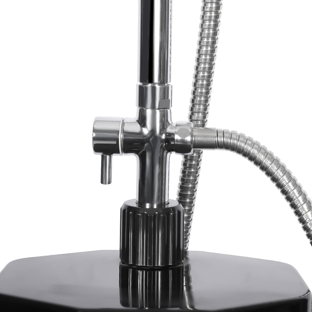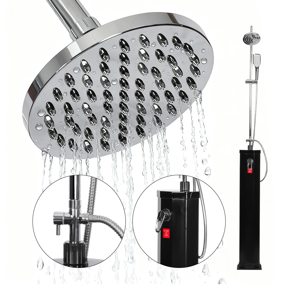 Deze LY18L09-B 18L pvc-zonnedouche aan het zwembad met mobiele roestvrijstalen hoofddouche is ontworpen om comfort en ontspanning te brengen in een verscheidenheid aan buitenomgevingen, of het nu in de tuin, bij het zwembad of op kampeertochten is, en biedt een moderne oplossing om van warm water te genieten zonder de noodzaak van externe energiebronnen. Het beschikt over een extra grote regendouchekop met een ingebouwd kogelgewricht dat een eenvoudige aanpassing tot 180° mogelijk maakt, wat flexibiliteit in gebruik garandeert en de installatie eenvoudig maakt. De flexibele douchekop in regenwoudstijl verbetert de ervaring doordat u eenvoudig de waterstroom kunt regelen, waardoor een rustgevend, spa-achtig gevoel ontstaat dat lijkt op het staan onder een natuurlijke waterval. Samen zorgen deze functies voor een verfrissende en aanpasbare douche-ervaring, waardoor het ideaal is voor iedereen die op zoek is naar zowel functionaliteit als ontspanning buitenshuis.