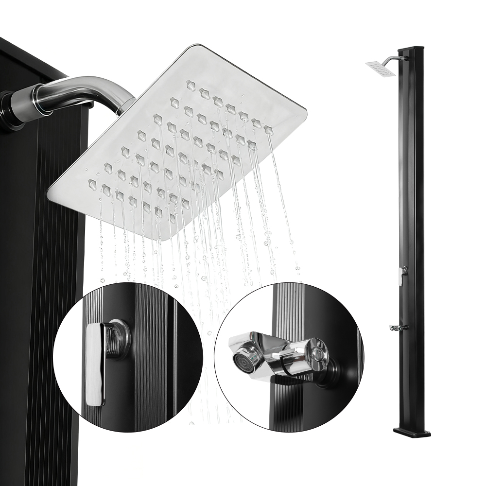 Deze LY30L02 buitenregendouche met één hendel douchestandaard is voorzien van een aluminium douchepijp van 30 liter, die voldoende water levert voor een comfortabele, verfrissende douche-ervaring, waardoor hij ideaal is voor gebruik in de tuin of buiten. De eengreepsmengkraan zorgt voor een snelle en gemakkelijke aanpassing van de temperatuur, waardoor gebruikers de watertemperatuur kunnen aanpassen aan hun voorkeursinstelling. De grote regendouchekop is voorzien van een geïntegreerd kogelgewricht dat 180° kan draaien, waardoor het verkoelende effect wordt versterkt en de installatie wordt vereenvoudigd, voor extra gemak en comfort.