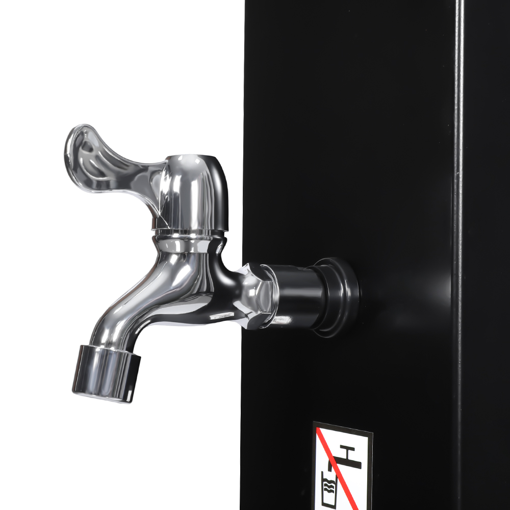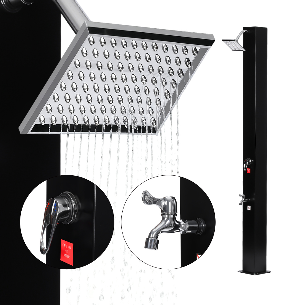Deze LY35L04-SS buitendouche op zonne-energie met hoge capaciteit is ontworpen om een comfortabele en gemakkelijke buitenbadervaring te bieden door de kracht van zonlicht te benutten om water tot ongeveer 60°C te verwarmen, waardoor er geen elektriciteit nodig is. Het vullen van de douchepijp gaat moeiteloos: sluit eenvoudig een standaard tuinslang aan en de douche is klaar voor gebruik. Voor extra gemak houdt een ingebouwd metalen rek douchebenodigdheden zoals gel of shampoo binnen handbereik, terwijl een doordacht geplaatst afvoergat aan de onderkant zorgt voor een snelle en efficiënte verwijdering van water, waardoor stilstaand water wordt voorkomen. De gehele unit wordt gemonteerd door de onderdelen stevig aan elkaar te schroeven, waardoor een stabiele structuur wordt gegarandeerd. Voor een veilige werking in buitenomgevingen is een goede grondverankering vereist. Om de installatie en het gebruik eenvoudig te maken, worden uitgebreide meertalige instructies meegeleverd, waardoor deze toegankelijk zijn voor gebruikers in verschillende regio's.