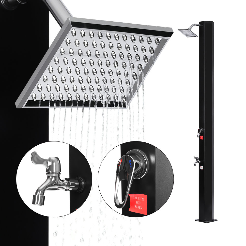 Met zijn royale douchepijp verwarmt deze LY35L05-SS handige zonnedouche tegen waterophoping efficiënt water tot 60°C in de volle zon, waardoor er geen elektriciteit nodig is en hij ideaal is voor duurzaam gebruik buitenshuis. Sluit eenvoudig een standaard tuinslang aan om de douchepijp te vullen en het hele gezin kan genieten van een verfrissende en comfortabele douche-ervaring in de tuin, bij het zwembad of zelfs op de camping. Een zorgvuldig geïntegreerd metalen bakje biedt een handige plek om douchegel en andere benodigdheden binnen handbereik te houden, terwijl afvoergaten aan de onderkant zorgen voor een soepele waterstroom en ophoping van water voorkomen. Bovendien is de douche ontworpen voor eenvoudige demontage, waardoor hij compact kan worden opgeborgen wanneer hij niet wordt gebruikt, waardoor hij bijzonder praktisch is voor opslag en transport buiten het seizoen.