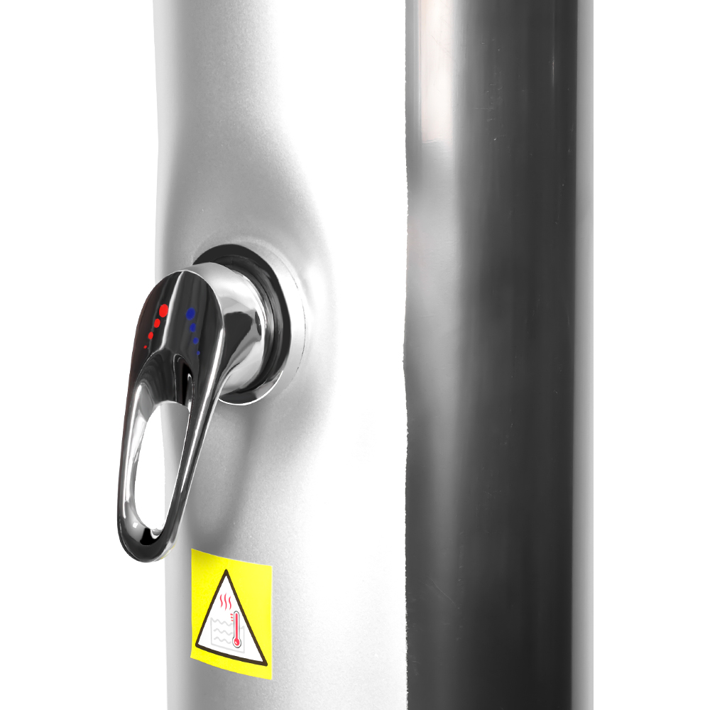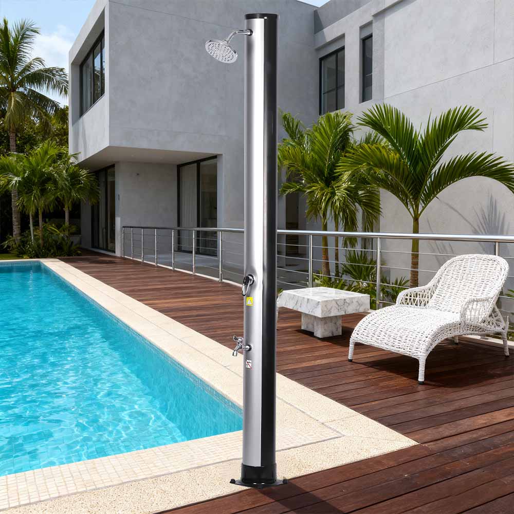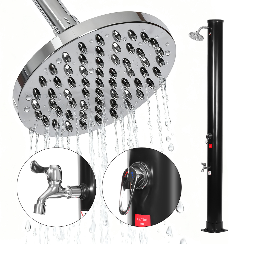 De royale douchepijp van deze LY35L06 draagbare, milieuvriendelijke buitendouche op zonne-energie maakt gebruik van de kracht van de zon om water tot 60°C te verwarmen, waarbij geen elektriciteit nodig is en biedt een milieuvriendelijke oplossing voor buitenbaden. Sluit eenvoudigweg een standaard tuinslang aan om de doucheleiding te vullen, en het hele gezin kan genieten van een verkwikkende douche in de tuin, bij het zwembad of tijdens het kamperen. Een praktisch, ingebouwd metalen bakje houdt douchebenodigdheden zoals zeep en shampoo binnen handbereik, terwijl afvoersleuven aan de onderkant voorkomen dat water zich ophoopt, wat zorgt voor een schone en aangename ervaring. Met de 360° draaibare regendouchekop, gemonteerd op een geïntegreerd kogelgewricht, kunt u de richting van de waterstroom eenvoudig aanpassen, waardoor een aangenaam verkoelend gevoel ontstaat, terwijl de extra voetspoelkraan een handige manier biedt om u snel op te frissen. Deze douche is ontworpen voor gemak en kan eenvoudig worden gedemonteerd voor compacte, ruimtebesparende opslag buiten het seizoen of voor transport op reis.